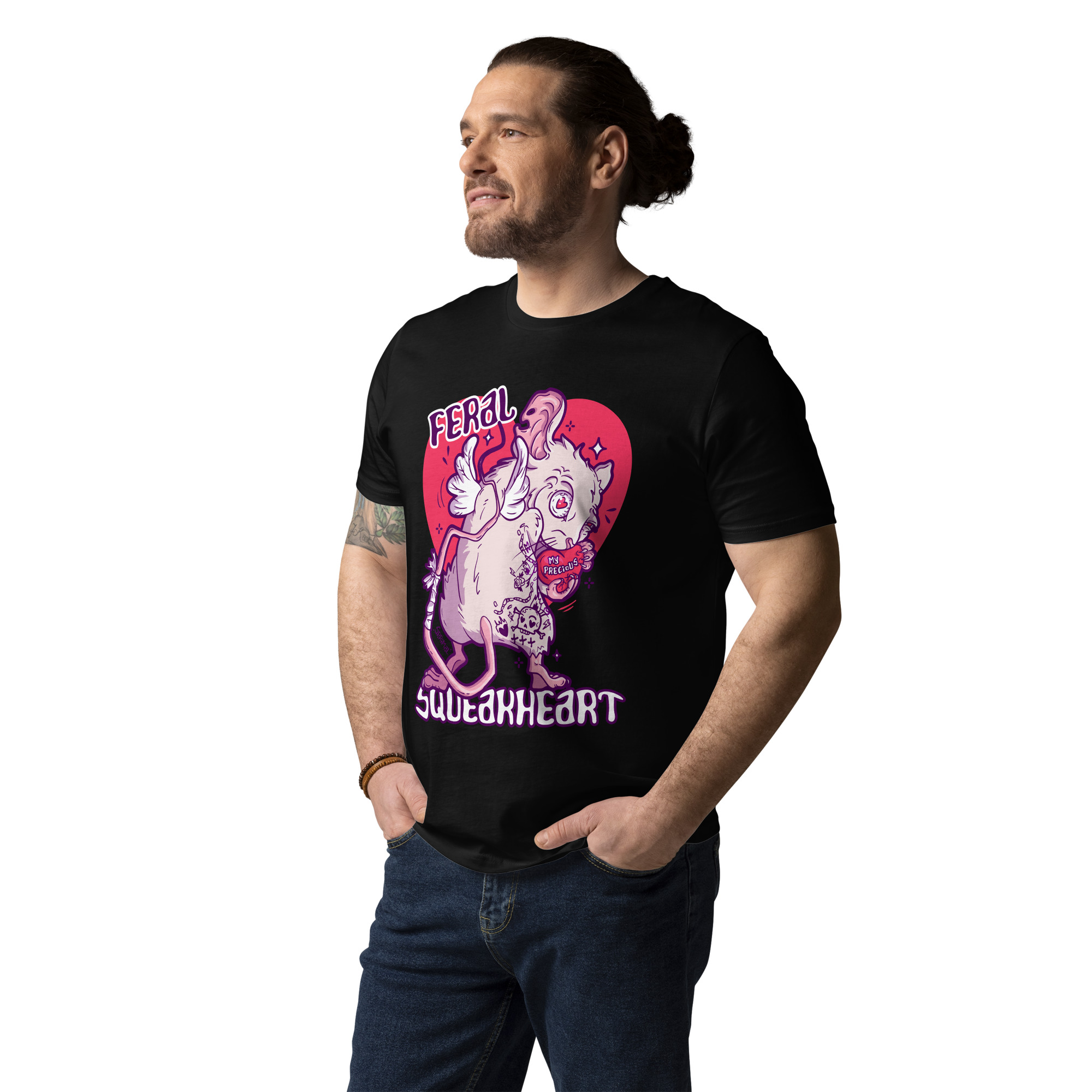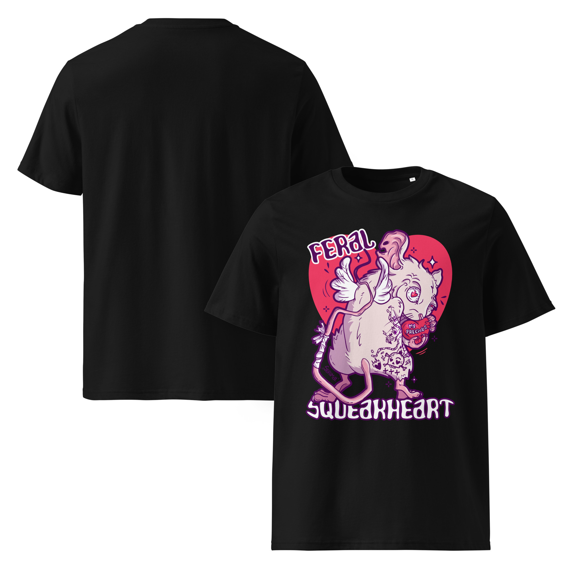 Feral Squeakheart T-shirt is soft, comfortable, and emotionally loud. Featuring a central design that radiates devoted chaos, it’s perfect for casual days, dates, or situations where you want your outfit to quietly scream “I love intensely.”