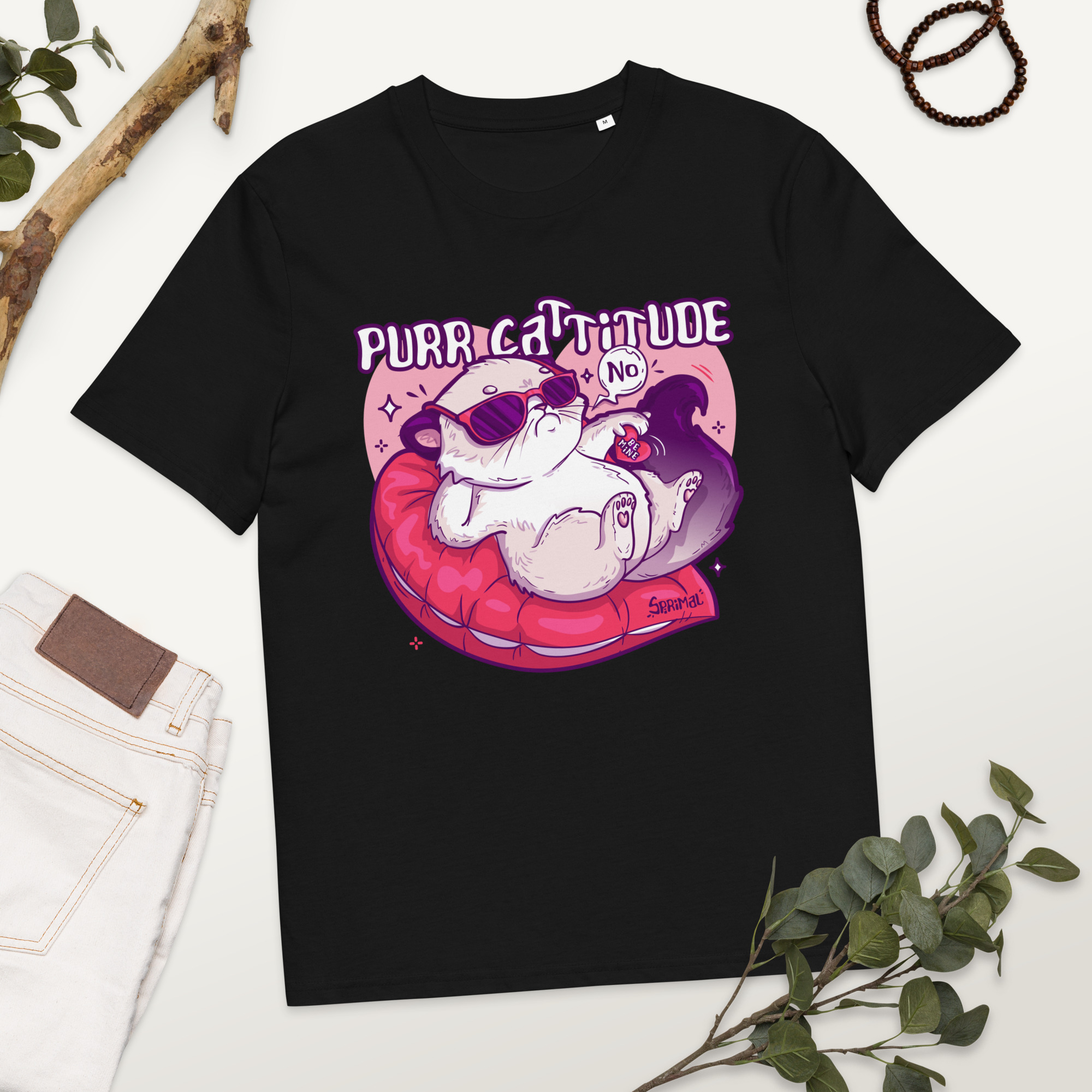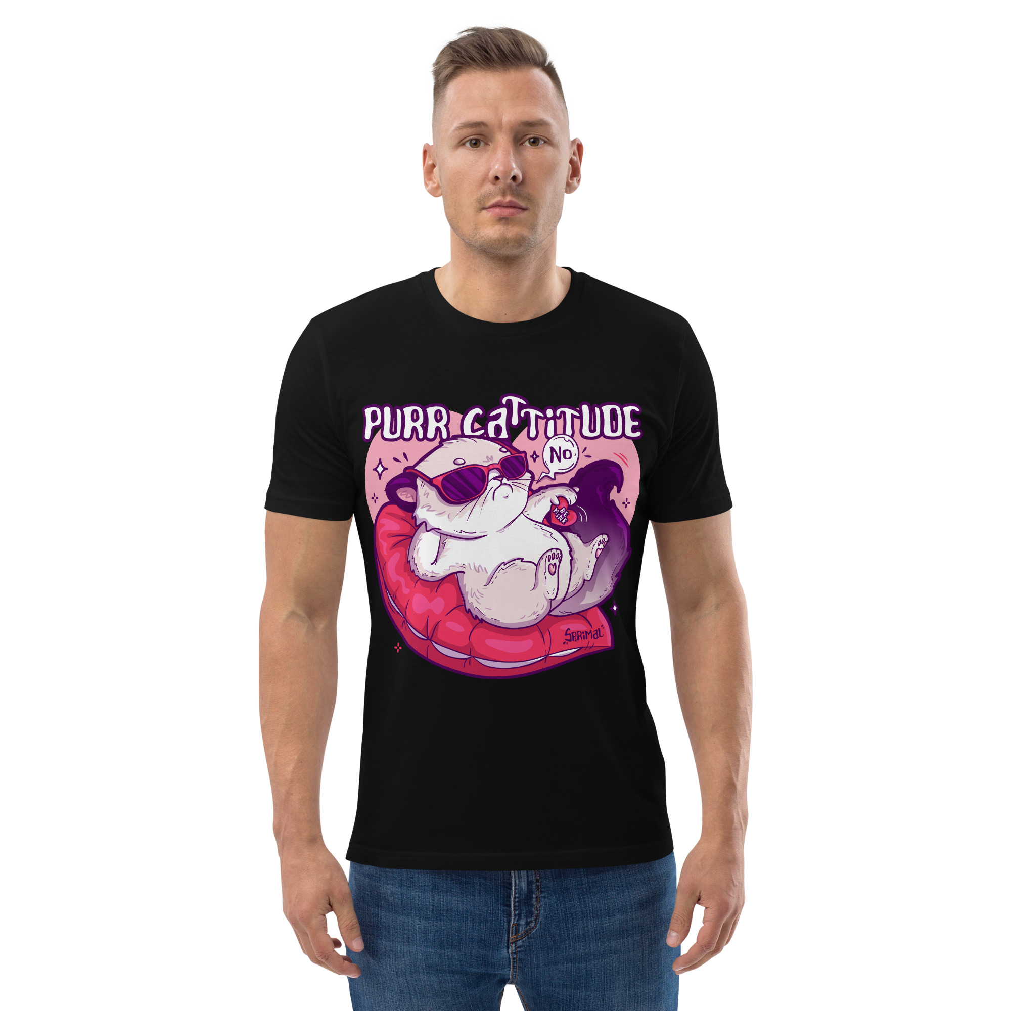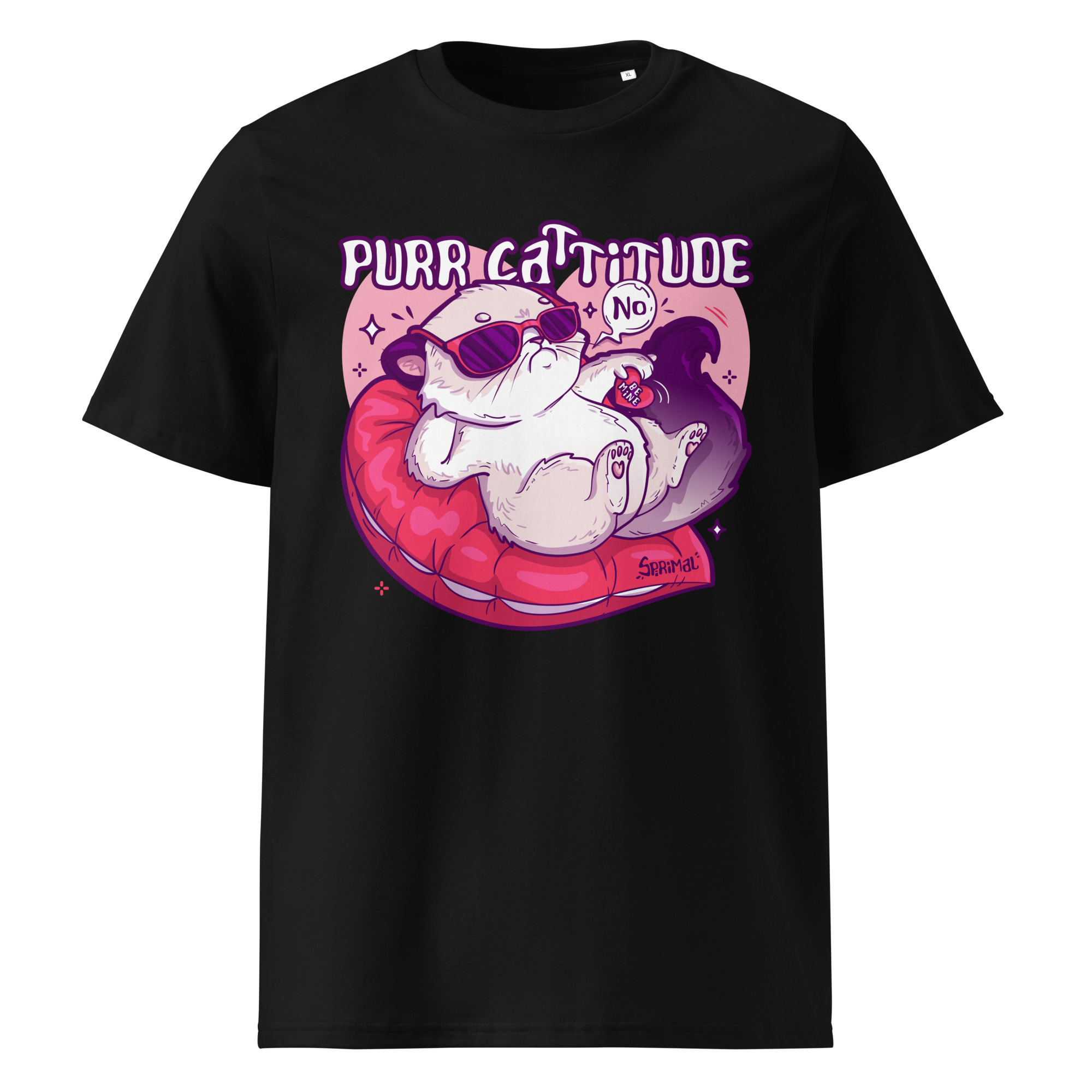 Purr Cattitude T-shirt is for those who carry themselves like a cat on a heart pillow: relaxed, confident, and deeply uninterested in nonsense. With a central design that radiates sass and self-assurance, it’s perfect for casual wear, anti-Valentine moods, or everyday feline energy.