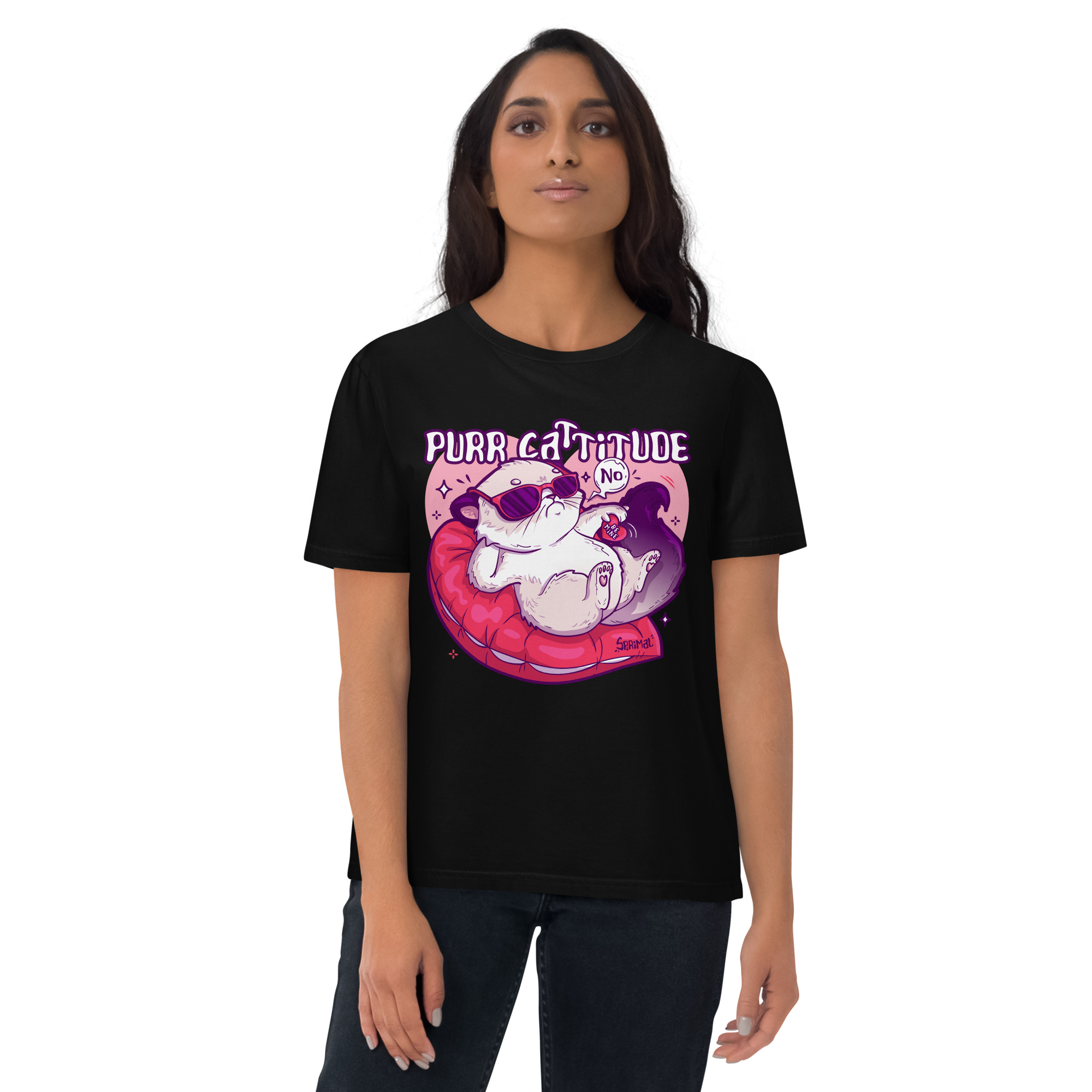 Purr Cattitude T-shirt for Unimpressed with romance. Unavailable no matter the gesture. Iconic every day.